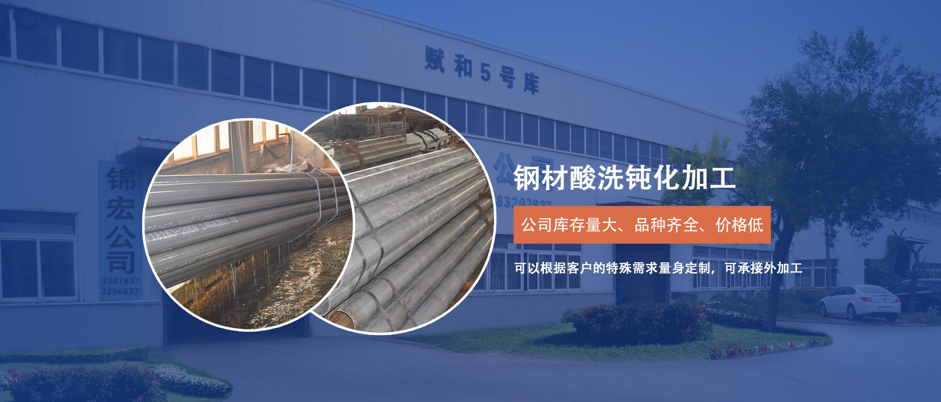 本公司主要產品:鋼材酸洗鈍化加工、鋼管酸洗磷化皂化、無縫鋼管酸洗防銹加工、紡織機械用管等